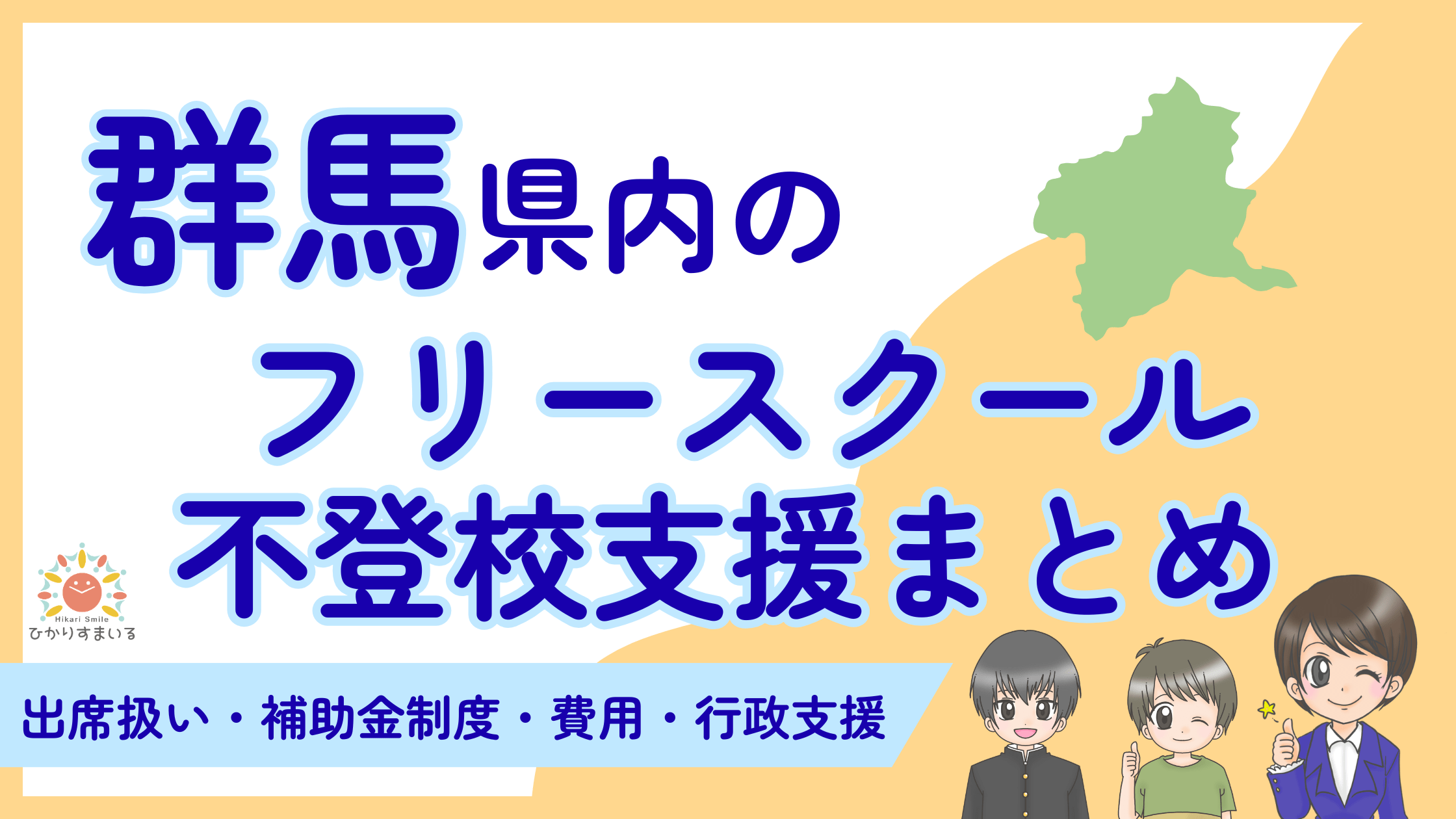 補助金制度は未整備ですが、フリースクールへの通学を学校の出席として認める「出席扱い」の実績は、高崎市、桐生市、館林市、富岡市で確認されています。