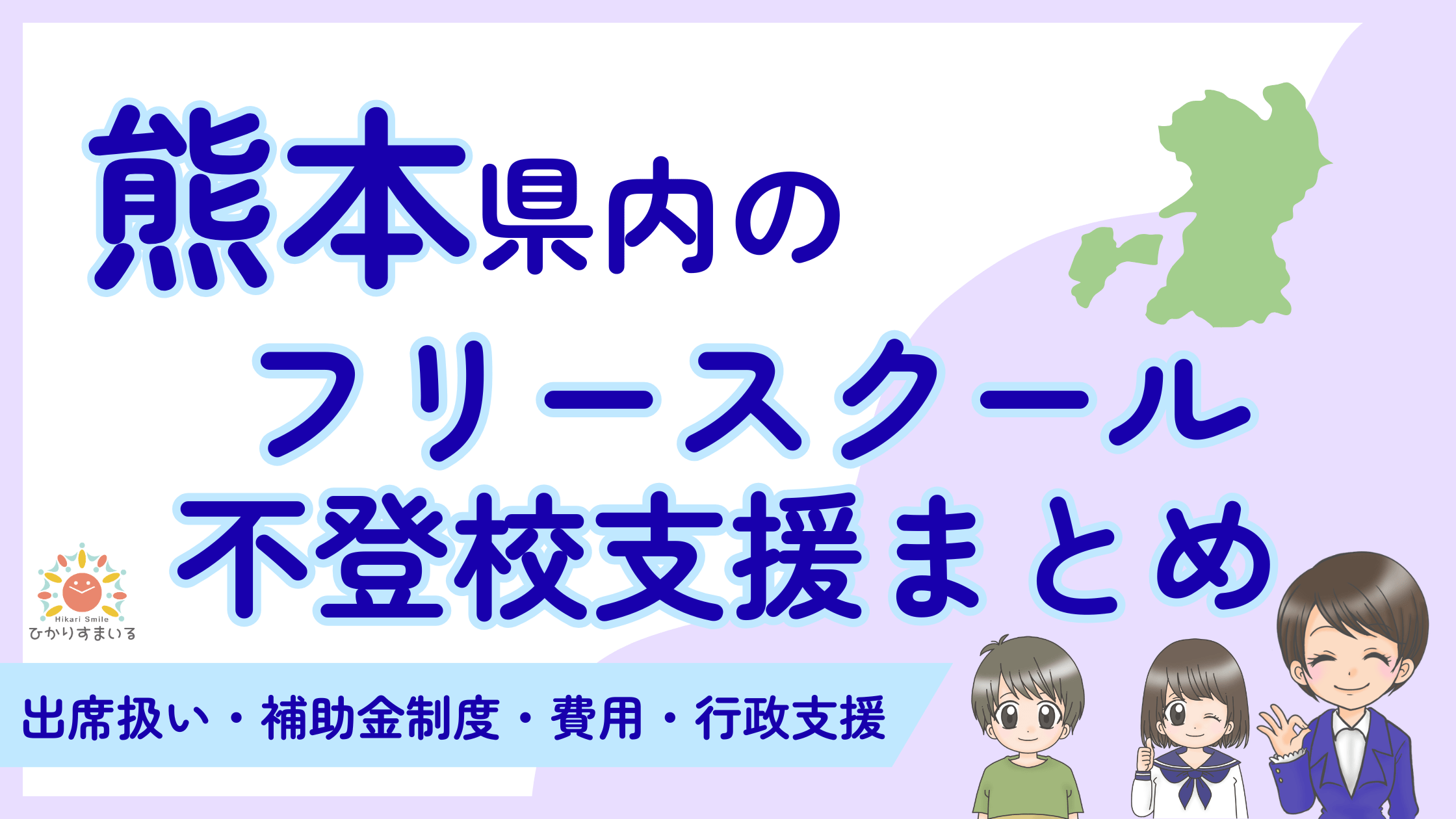 一方で、熊本市を除く市町村を対象として、フリースクールの利用料に対し、前期・後期それぞれ20,000円を上限とする補助制度が設けられています。