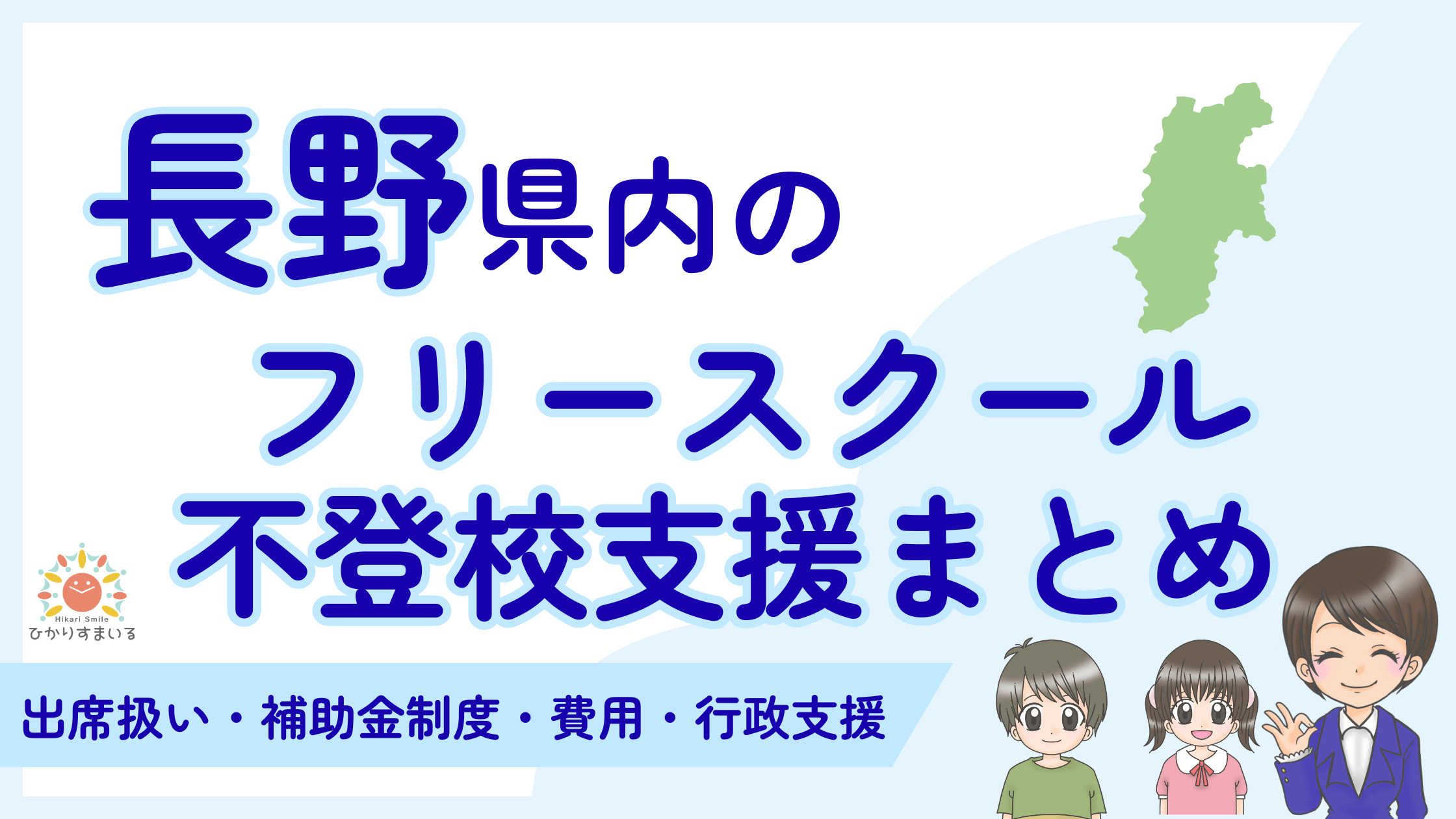 補助金制度は未整備ですが、フリースクールへの通学を学校の出席として認める「出席扱い」の実績は、長野市、飯田市、岡谷市、塩尻市、駒ヶ根市など、複数の市町村で確認されています。