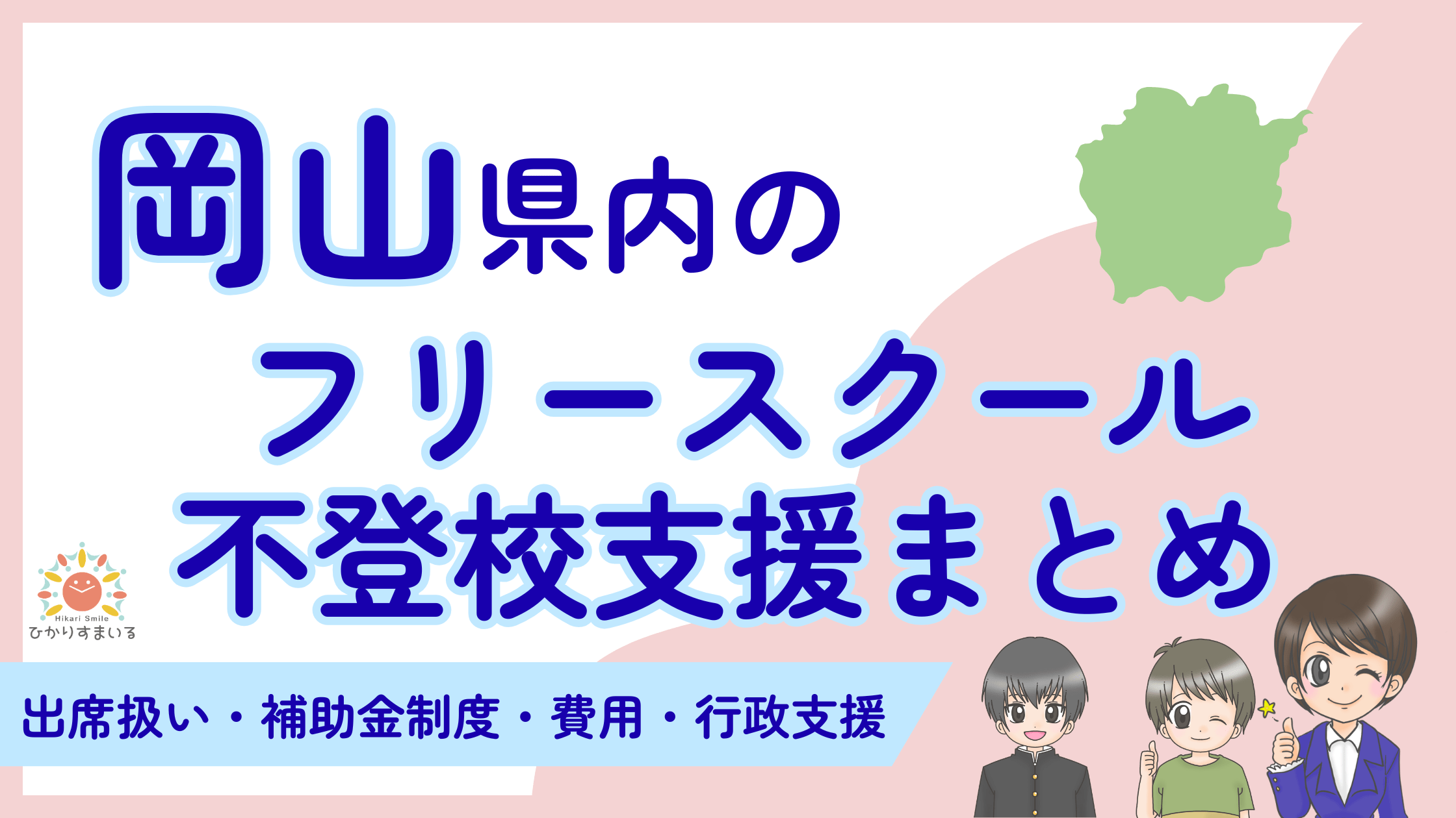 - 岡山県全体の不登校支援の特徴と市町村別の詳細ページへの案内