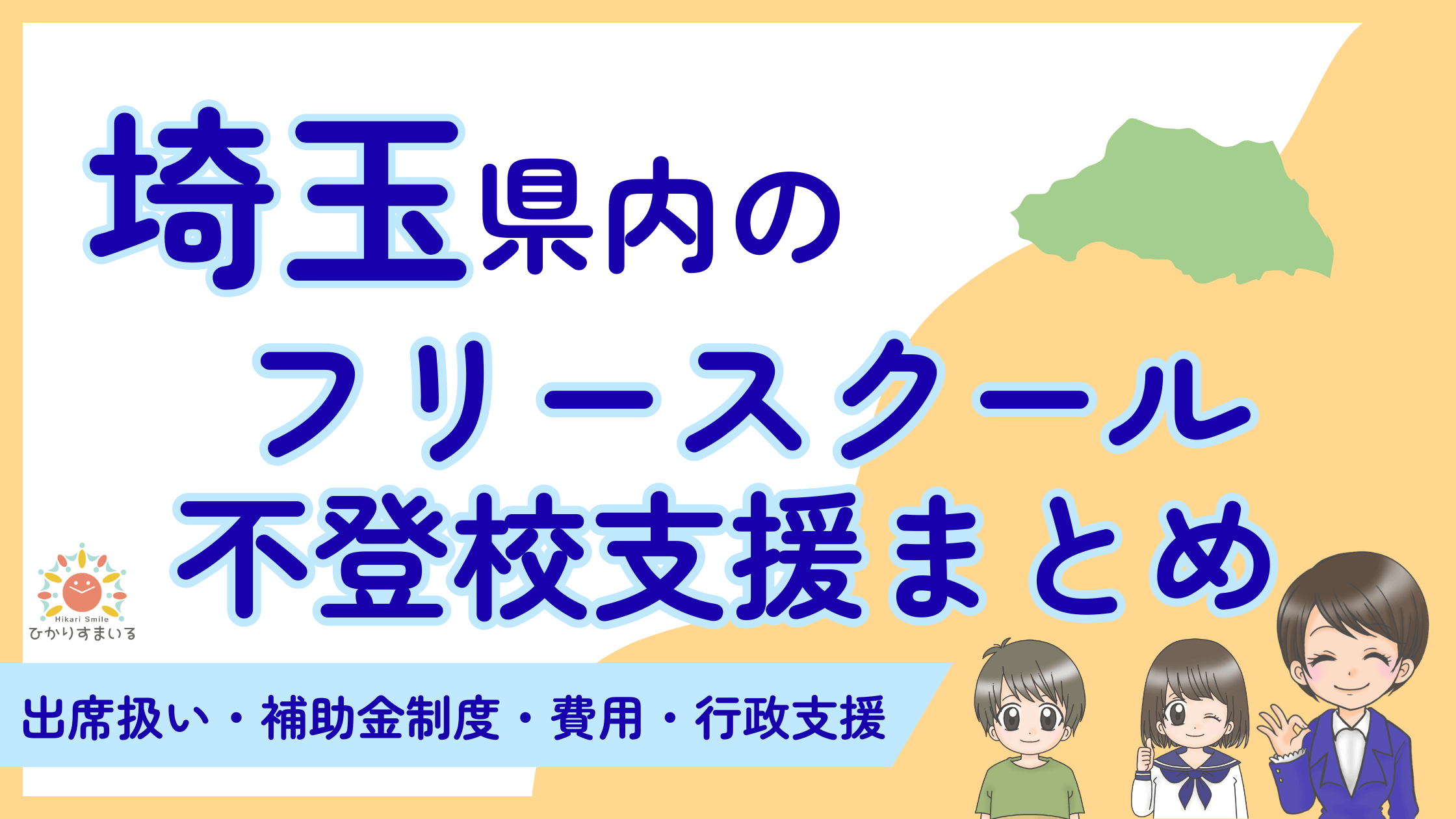 補助金制度は未整備ですが、フリースクールへの通学を学校の出席として認める「出席扱い」の実績は、さいたま市、川越市、越谷市、草加市、春日部市など、複数の市町村で確認されています。