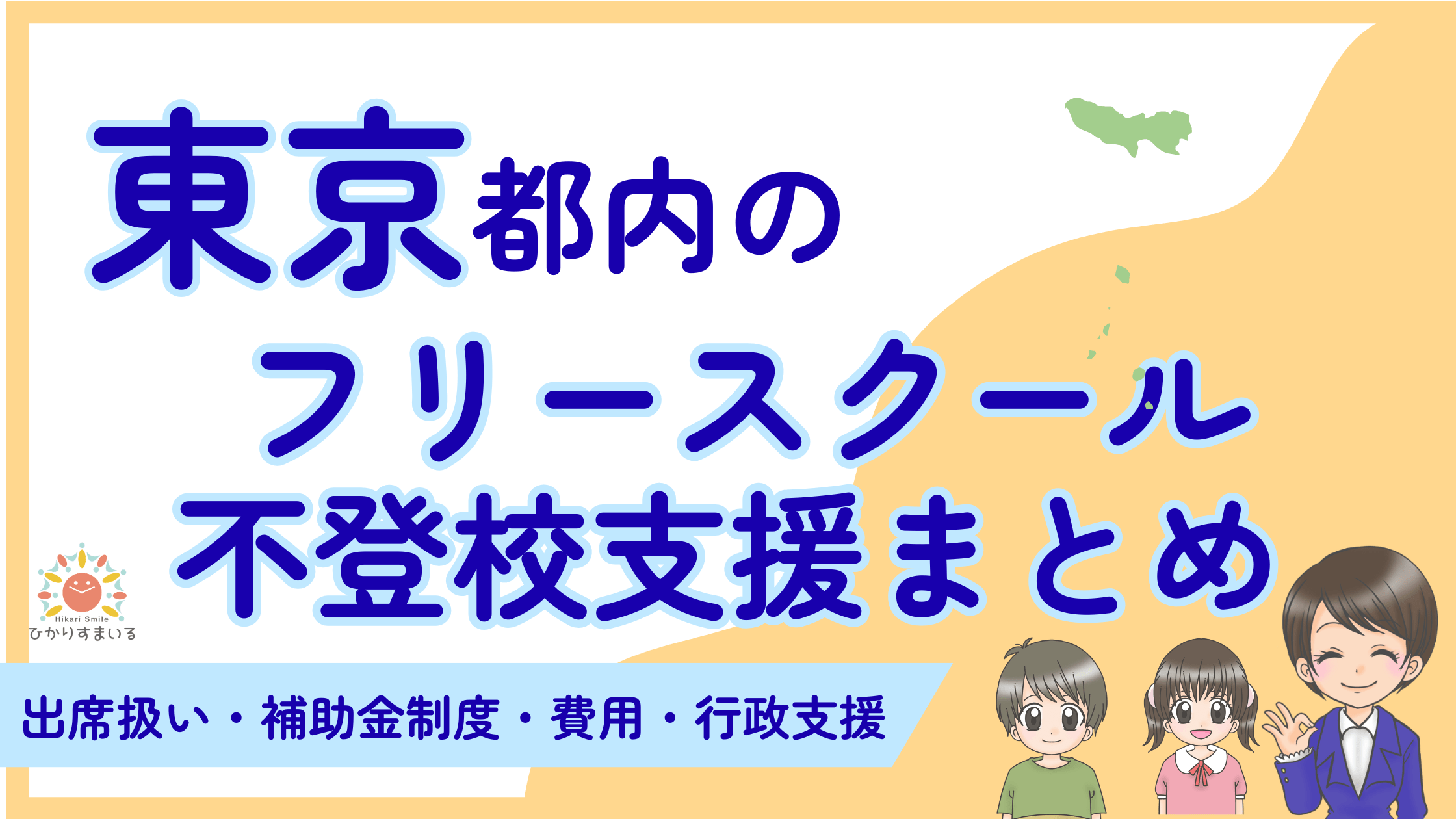 現在、東京都では、都内すべての市区町村を対象に、フリースクール等の利用料に対する助成制度が設けられています。